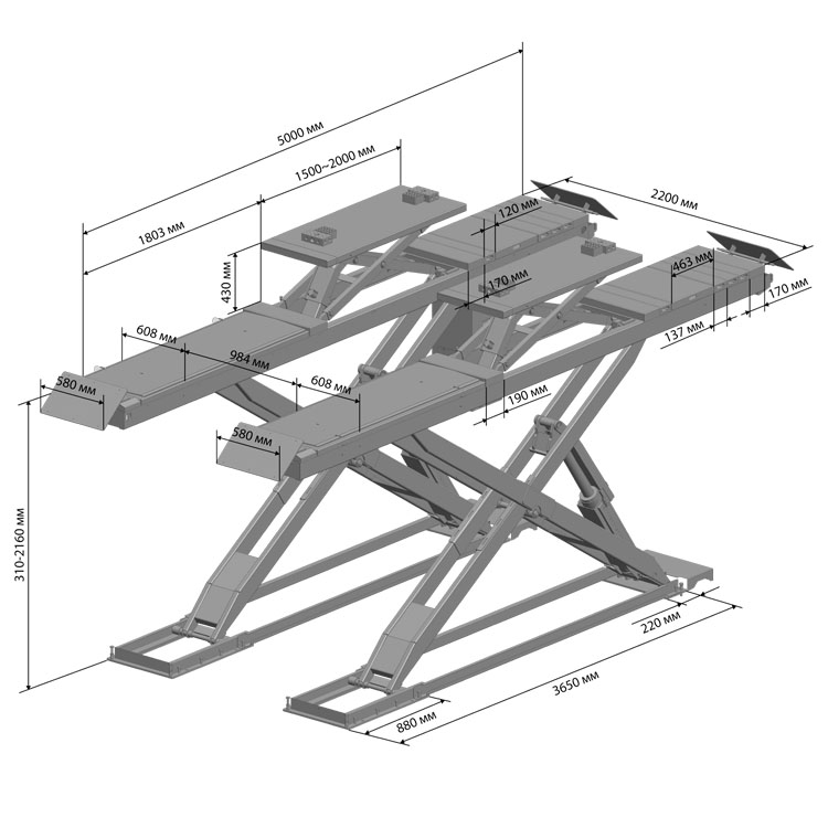 Электрогидравлический ножничный подъемник для сход-развала с подъемником второго уровня