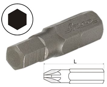 Материалы и технологический процесс изготовления: - сталь: хромомолибденовая S2 (Cr-Ni-Mo) - обработка: полирование - покрытие: дробеструйная обработка - твердость: 58-62 HRC Конфигурация: - профиль: ШЕСТИГРАННЫЙ - под шестигран. привод 1/4" (6.35мм) - длина: 25мм