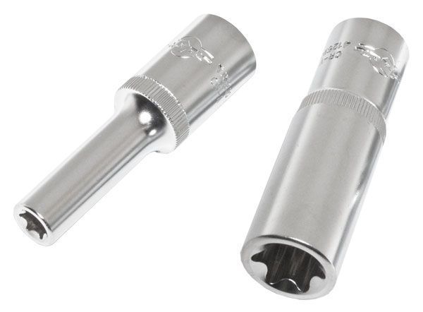 Материалы и технологический процесс изготовления: - сталь: хромованадиевая Cr-V 50BV30 - обработка: полирование, закалка ТВЧ - покрытие: трехслойное хромоникелевое - твердость: 42-46 HRC Конфигурация: - профиль TORX - посадочный квадрат 1/2" (12.7мм) с динамическим профилем - глубокая - накатка по окружности - габаритные размеры (DxL): -х-мм
