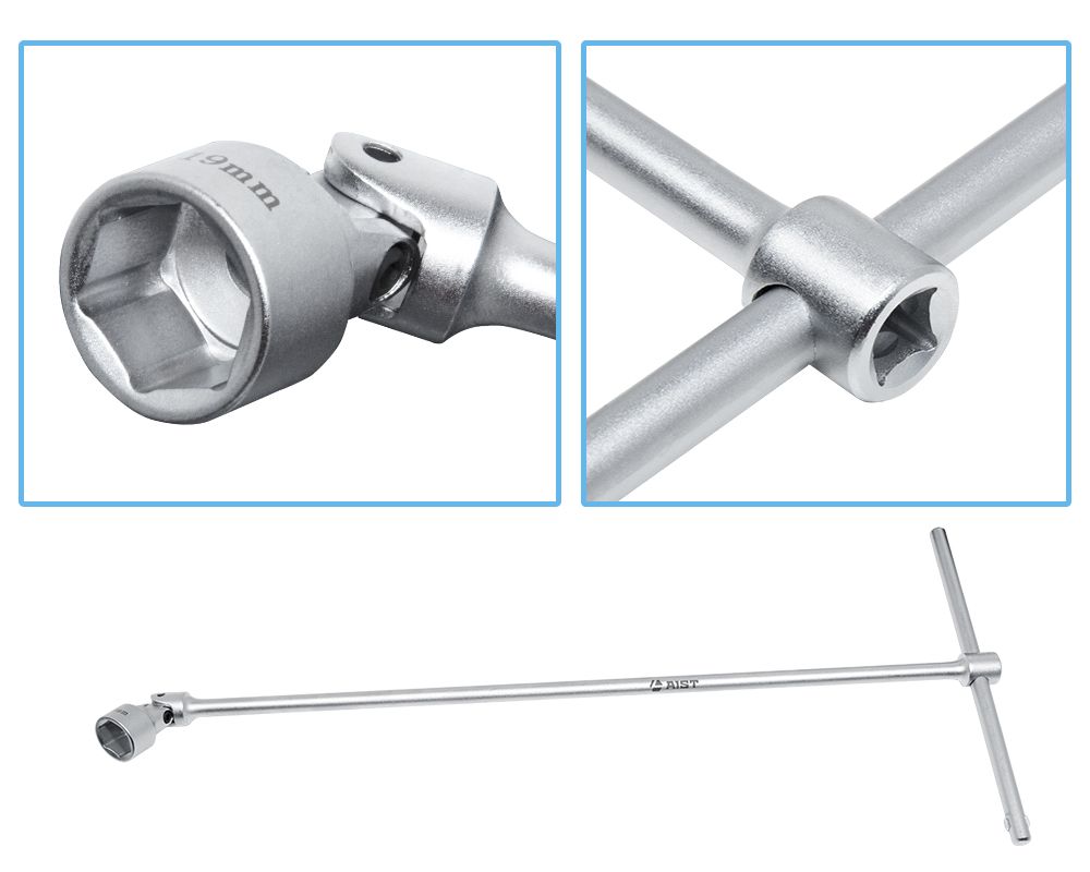 Набор ключей Т-образных карданных(шарнирных) с торцевыми головками 14-19мм 6-гр. 4 предмета в ложементе для инструментальной тележки. Длина ключей 500мм. Используются для работы с резьбовыми соединениями, которые расположены в труднодоступных местах. Комплектация: - Ключ Т-образный карданный с торцевыми головками (6-ть граней) 500мм: 14, 17, 18, 19 мм; - Держатель для воротка (4 шт). - Сталь: хромованадиевая Cr-V. Набор головок Т-образных шарнирных 14, 17, 18, 19 мм. Профессиональный набор ключей торцевых Т-образных.