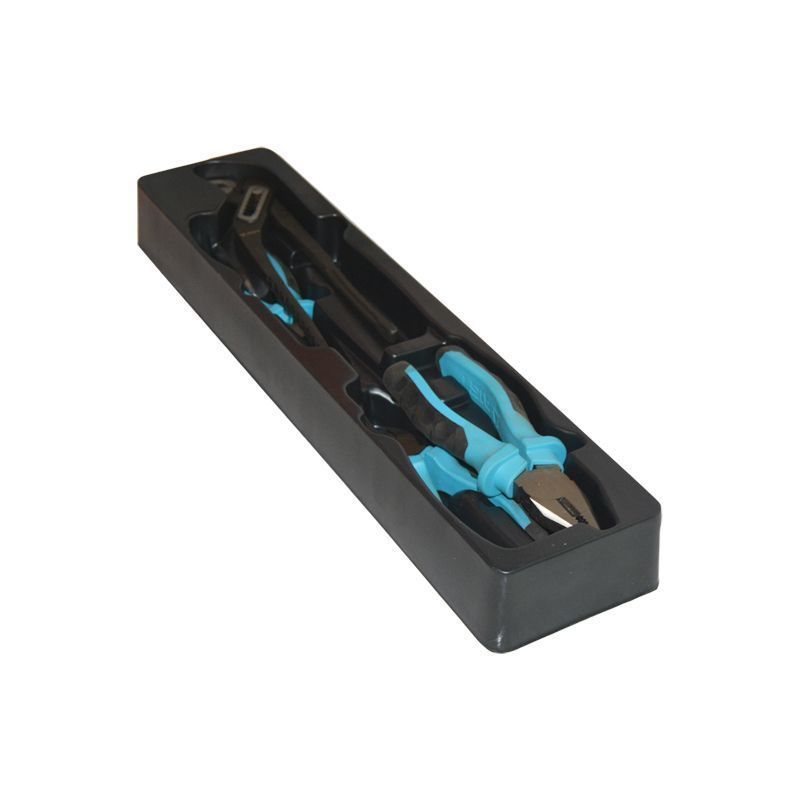 Профессиональный набор плоскогубцы, длинногубцы, бокорезы и клещи переставные 4 предмета в ложементе предназначен для комплектации инструментальных тележек, слесарных верстаков или ящиков. Комплектация: - Плоскогубцы комбинированные (пассатижи) 180мм; - Длинногубцы прямые 160мм; - Бокорезы диагональные 140мм; - Клещи переставные захват 0-45мм, длина 250мм. Прочее: - В пластиковом лотке (ложементе) 110х470х50мм Помимо качества и надежности рабочих материалов «AIST» уделяет большое внимание вопросу удобства и безопасности использования инструмента. Непрерывная работа в профессиональной деятельности всегда приносит усталость и мышечное напряжение. Для ручного инструмента специалистами компании «AIST» были разработаны современные рукоятки эргономичной формы, которые повторяют контур пальцев кисти руки, обеспечивая надежный захват и предотвращая неудобство и возможные повреждения конечности. Рукоятки сочетают в себе современный дизайн, долговечность, удобство в использовании.