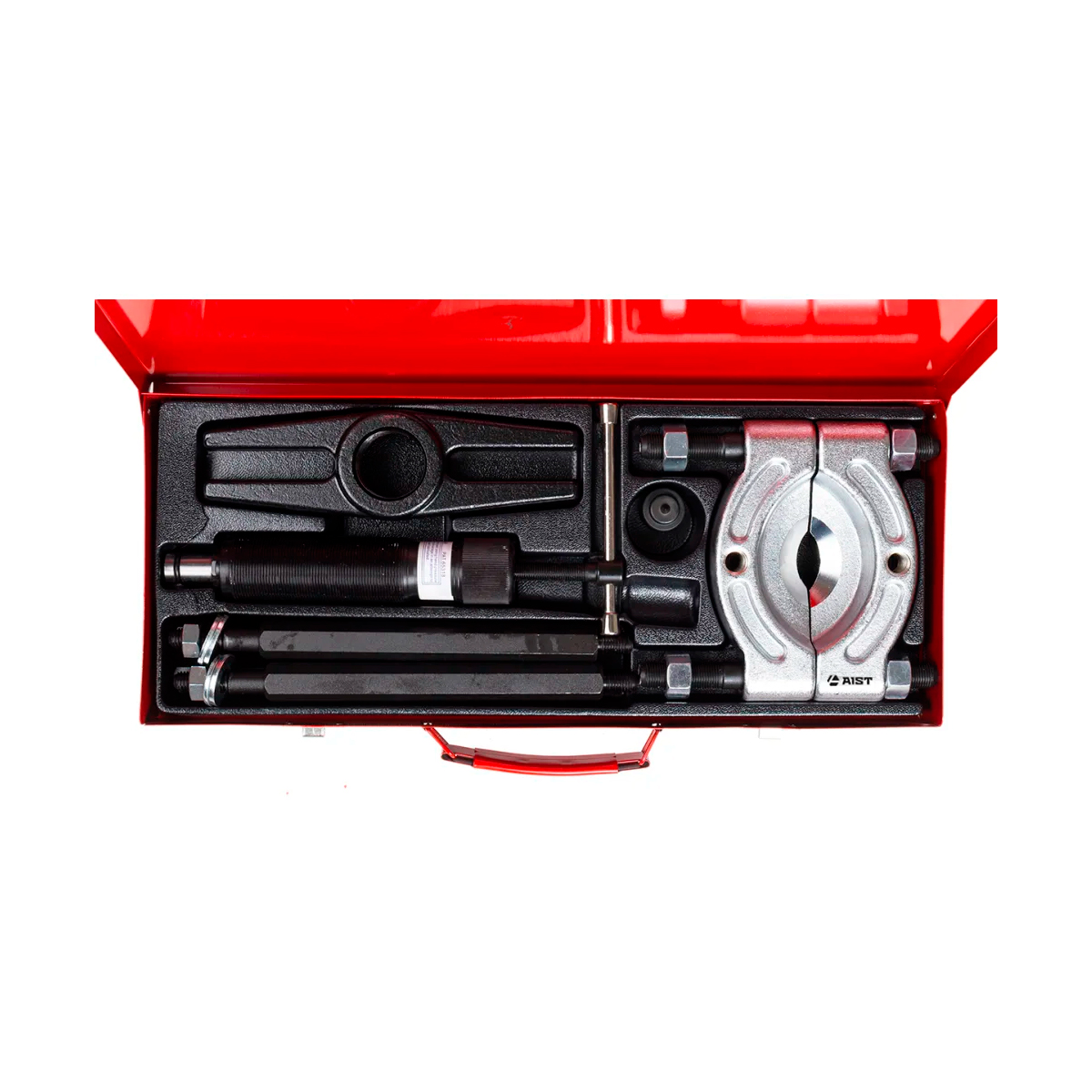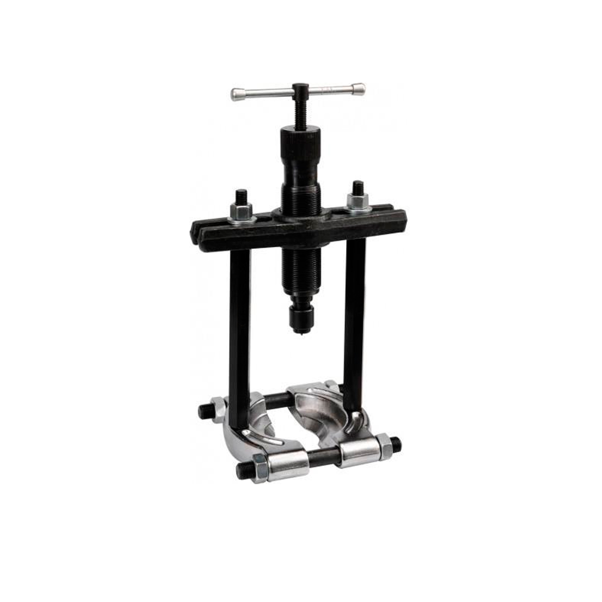 Благодаря наличию гидравлического привода применение cъемника-сепаратора не требует больших усилий и позволяющет применять его для проведения демонтажных работ с особонагруженными деталями. Демонтирует подшипник с помощью Н-образной балки и болтов. Захваты съемника изготовлены из легированной углеродистой стали SCM415, закаленной до твердости HRC 42-45, позволяют обслуживать детали в диапазоне размеров от 75 до 105 мм. Детали тянущей части изготавливаются из углеродистой стали. Комплектация: Съемник-сепаратор 75-105 мм в сборе со стяжными шпильками; Гидравлический цилиндр Ø=37.7 мм, L=160 мм усилие 10 тонн; Траверса; Соединительные шпильки для тянущей части 2 шт. L=200 мм.; Удлинители для тянущей части 2 шт. L=200 мм.; Опора толкателя; Металлический кейс.