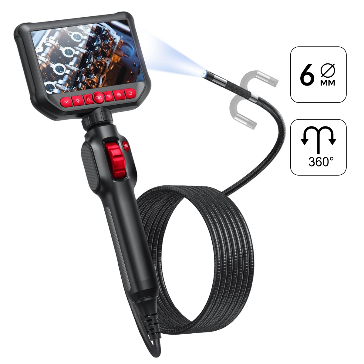 IC-VC156 Видеоэндоскоп управляемый, экран 4.3", 2Мп, 1920х1080, 1.5м, зонд 6мм, 360° iCartool IC-VC156