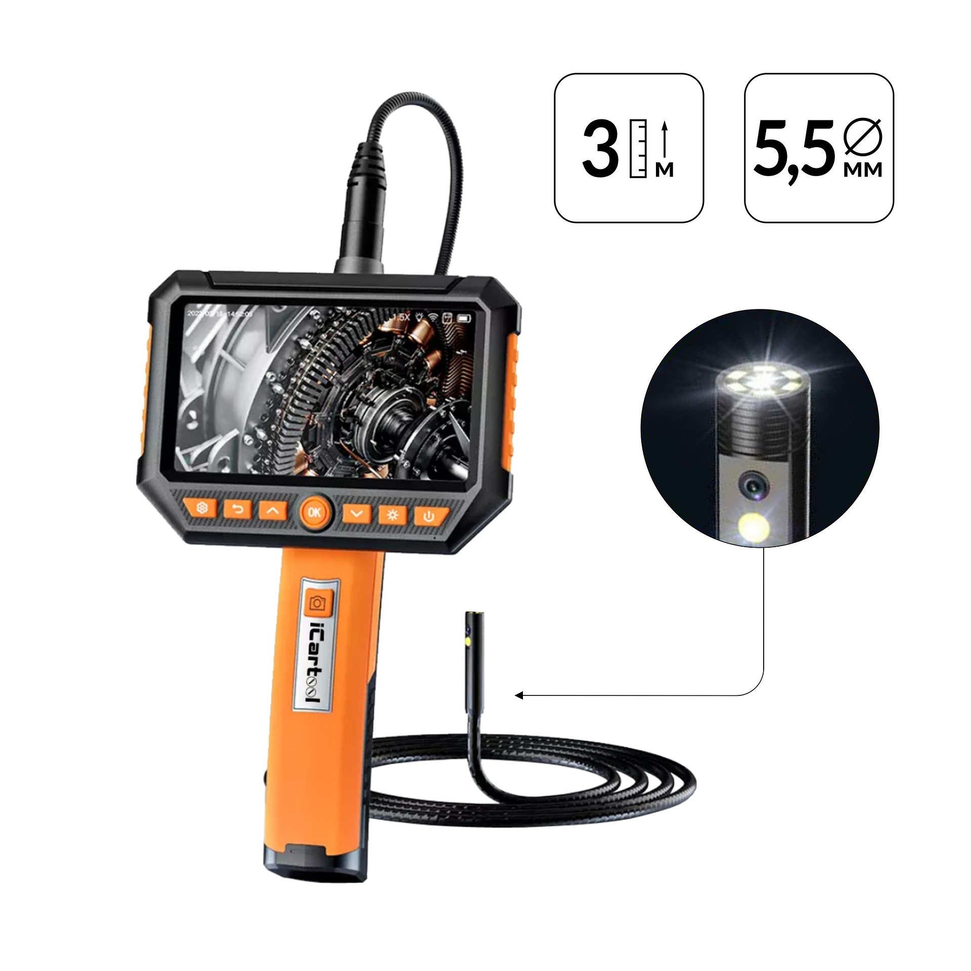 IC-V116B-3 Видеоэндоскоп промышленный, экран 5", 2 камеры, 2Мп, 1920х1080, 3м, 5.5 мм сменный зонд iCartool IC-V116B-3